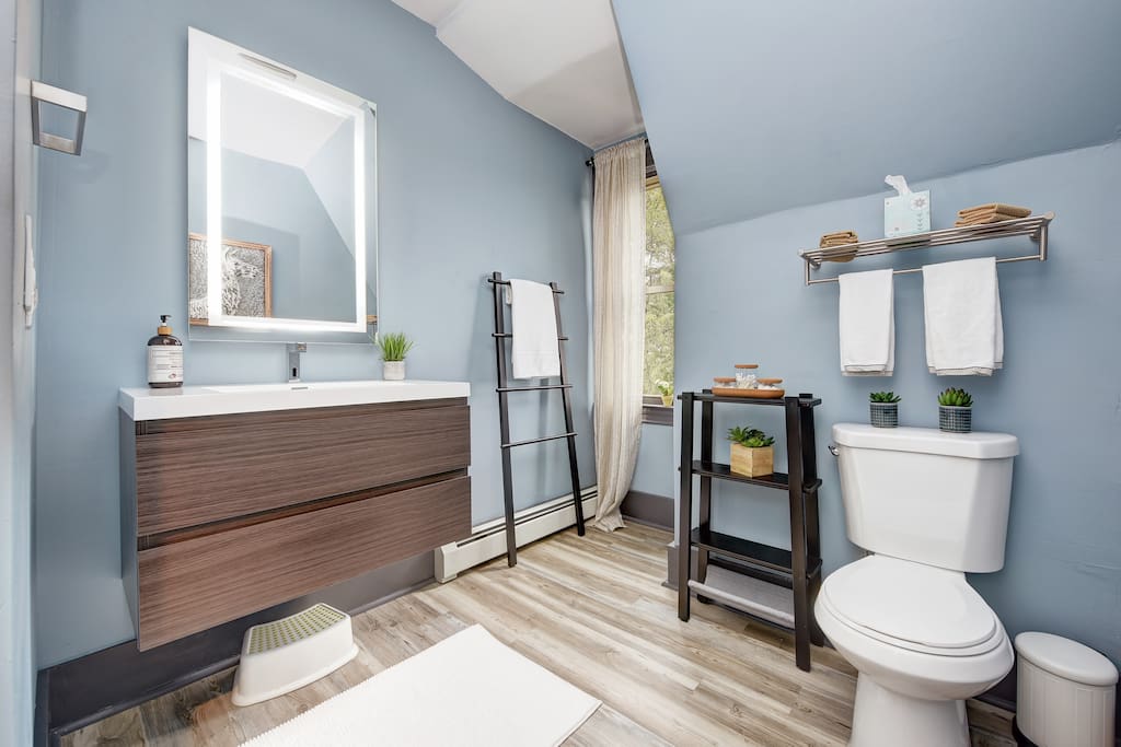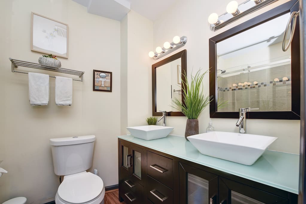- Two Full Bathrooms with standing showers and vanities, clean linens, soap and shampoo, blow dryer, and extra toiletries.